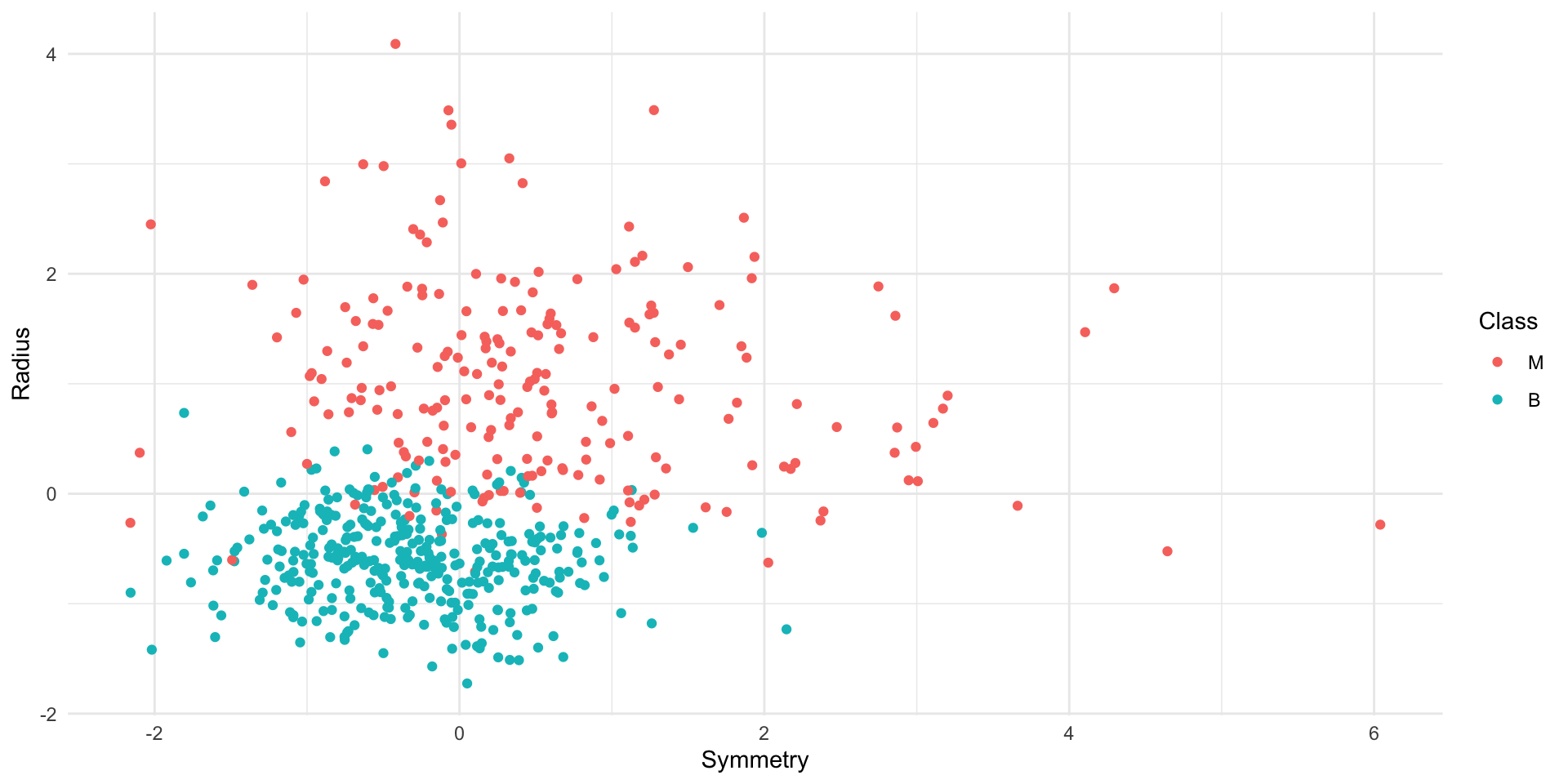 mutate(Class = fct_recode(Class, "Malignant" = "M", "Benign" = "B"))