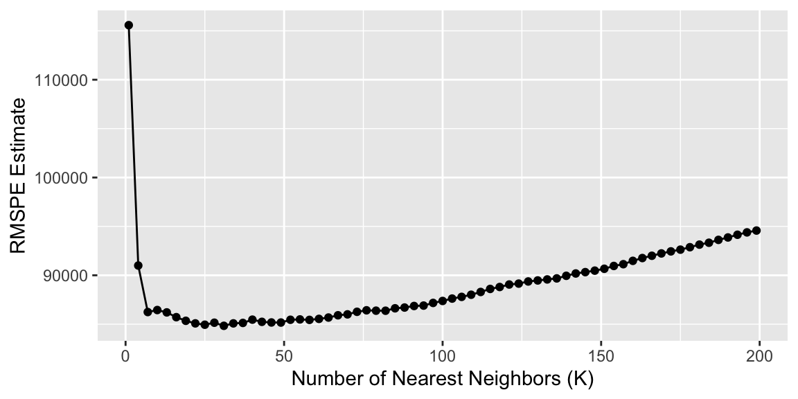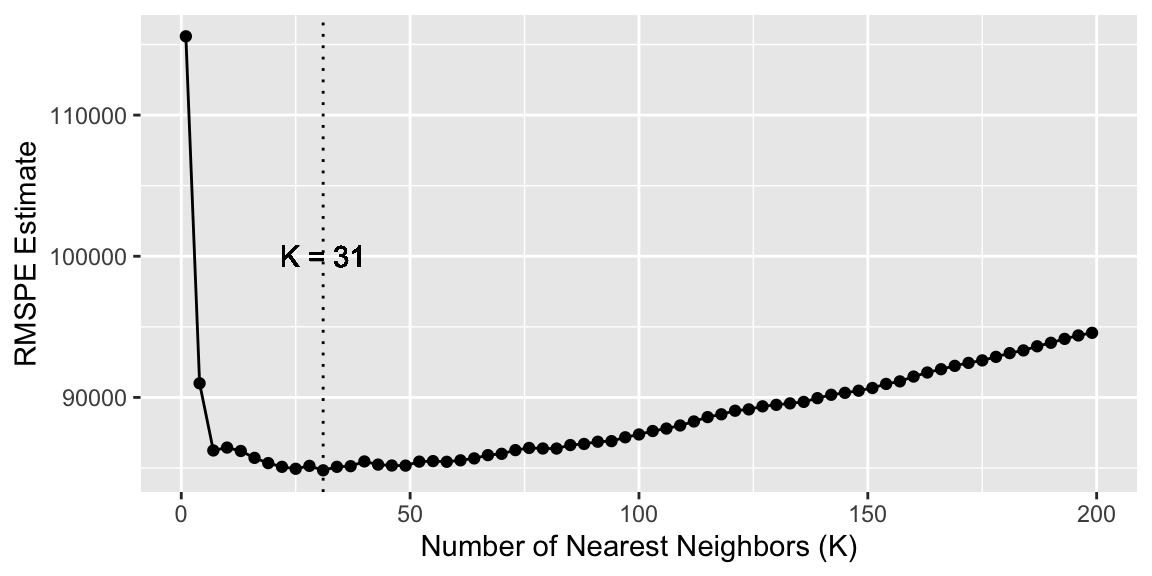 When we use cross-validation, we will choose the K that gives us the smallest RMSPE.