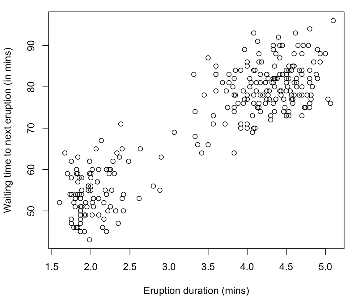 eruptions Eruption time in mins (numeric)