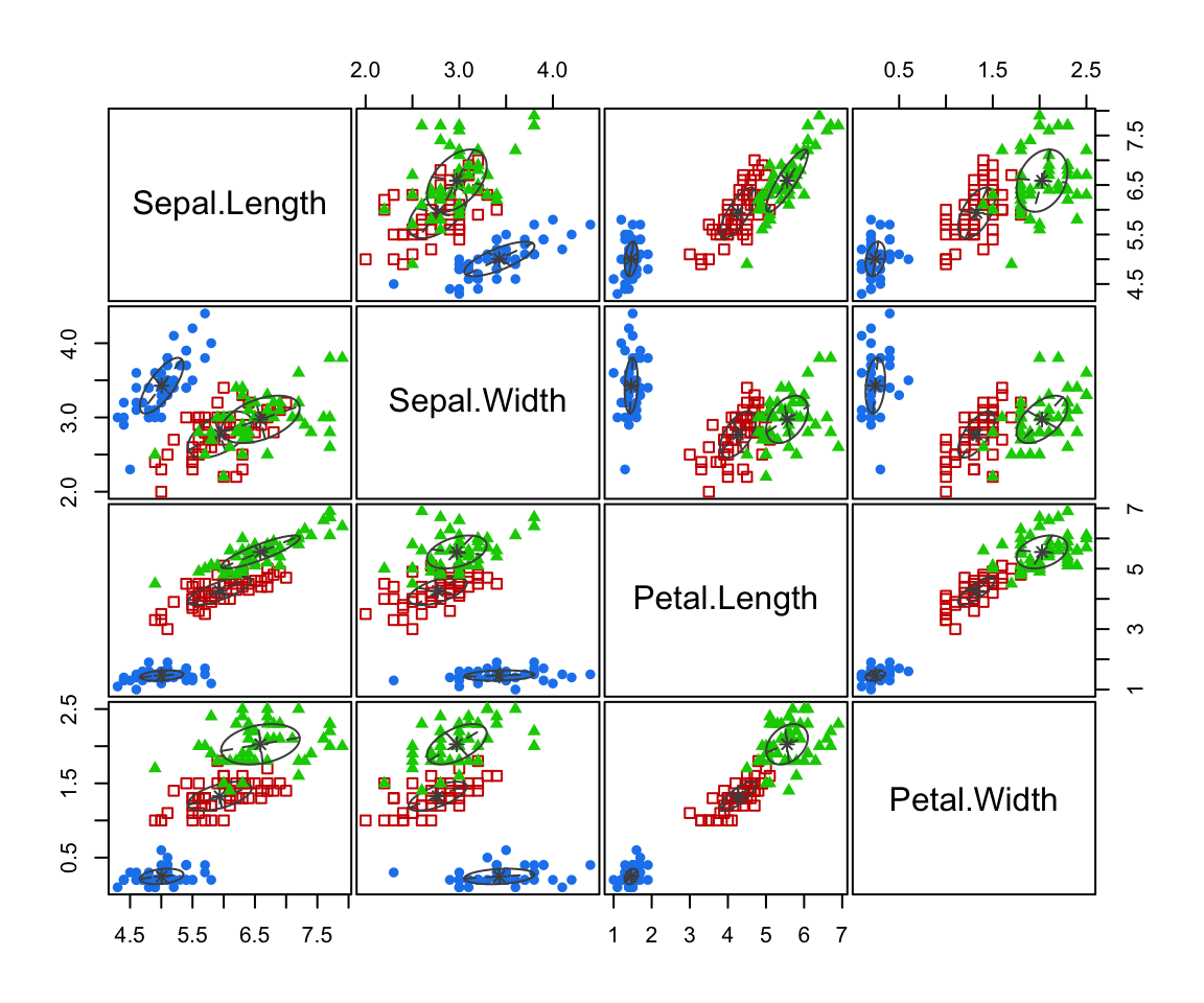 We can see that these species form distinct clusters (esp in the Sepal.Width vs Petal.Width scatterplot)